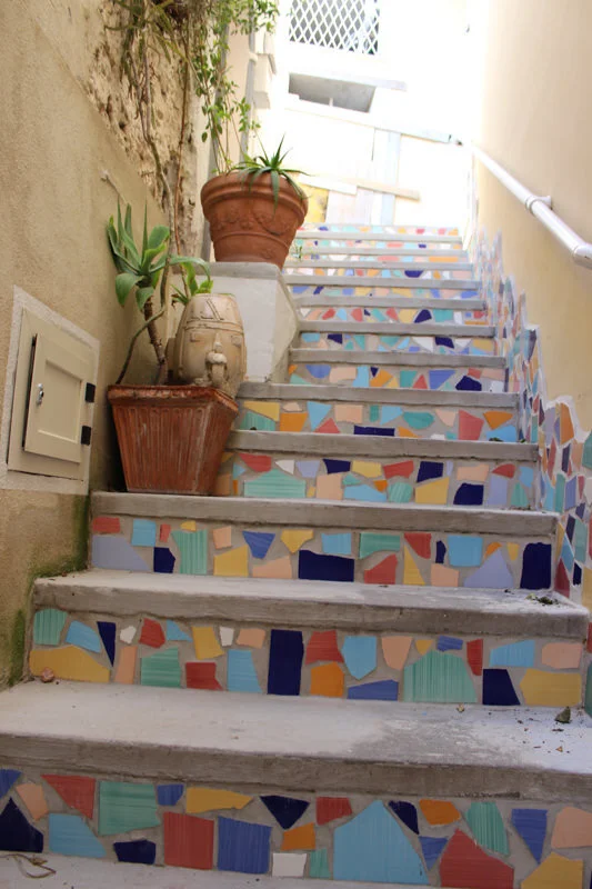 From Florence we took the train to Naples where friends met us and we all drove together to Positano on the Amalfi Coast, where we shared an incredible B&B on a cliff overlooking the sea. We were fortunate to arrive the week before Easter, as Positano was empty of tourists and the locals were whitewashing the houses and repairing the streets to have everything pristine and beautiful for the Spring and Summer rush. It was so quiet that the small local markets recognized us, and made sure that we remembered certain things they knew we’d bought before!
